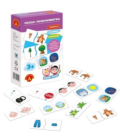 Doskonały sposób na wytłumaczenie dziecku znaczenia przeciwieństw oraz idealny pretekst do wyjaśnienia wielu pojęć z otaczającego świata. Zabawa polega na zestawianiu ze sobą puzzli o przeciwstawnych znaczeniach.