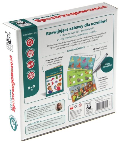 Uwaga: suchościeralny flamaster pozwala na swobodną zabawę i wielokrotne rozwiązywanie zagadek!