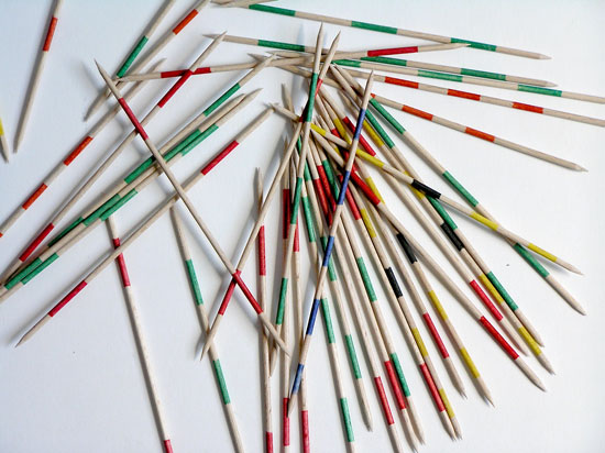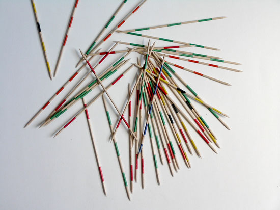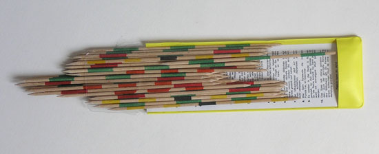Gra składa się z drewnianych patyczków o różnych wartościach punktowych(punktacja oraz zasady gry opisane są w załączonej instrukcji do gry).W grze może brać udział dowolna ilość osób. Bierki rozsypuje się nastole, następnie rozpoczyna się pojedyncze zbieranie przezposzczególnych graczy tak, by zdobyć jak najwyższą ilość punktów. Gracztraci kolejkę, gdy podczas wyciągania drgnie choćby jedna z pozostałychna stole bierek. Gra uczy cierpliwości i panowania nad ciałem orazskupienia na wykonywanej czynności. Stanowi również doskonałą zabawędla całej rodziny.