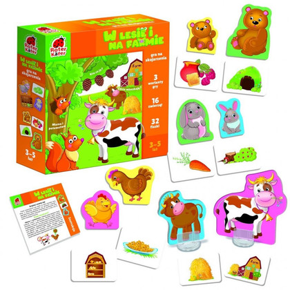 W zestawie znajdują się kartonowe karty z dzikimi i domowymi zwierzętami, a także karty z ich ulubionymi przysmakami. Dowiedz się, kto co je i połącz karty. Króliczek uwielbia marchewki, a krowa siano. Kto jeszcze? Poszukaj dodatkowych opcji gry w instrukcji!   Gra wspomaga logiczne myślenie, pamięć, koncentrację, mowę i wyobraźnię.